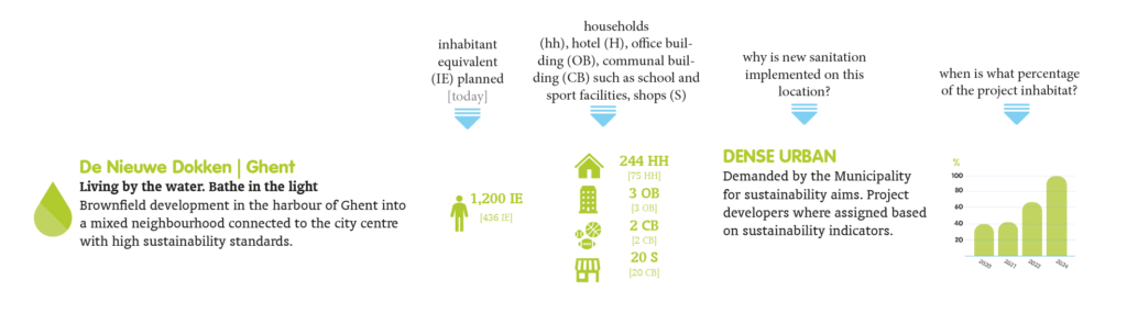 Gelegen op een voormalig industrieterrein in de haven van Gent, worden in De Nieuwe Dokken woningen gebouwd voor 244 huishoudens, inclusief 3 kantoorgebouwen, 2 gemeenschappelijke gebouwen en 20 winkels.